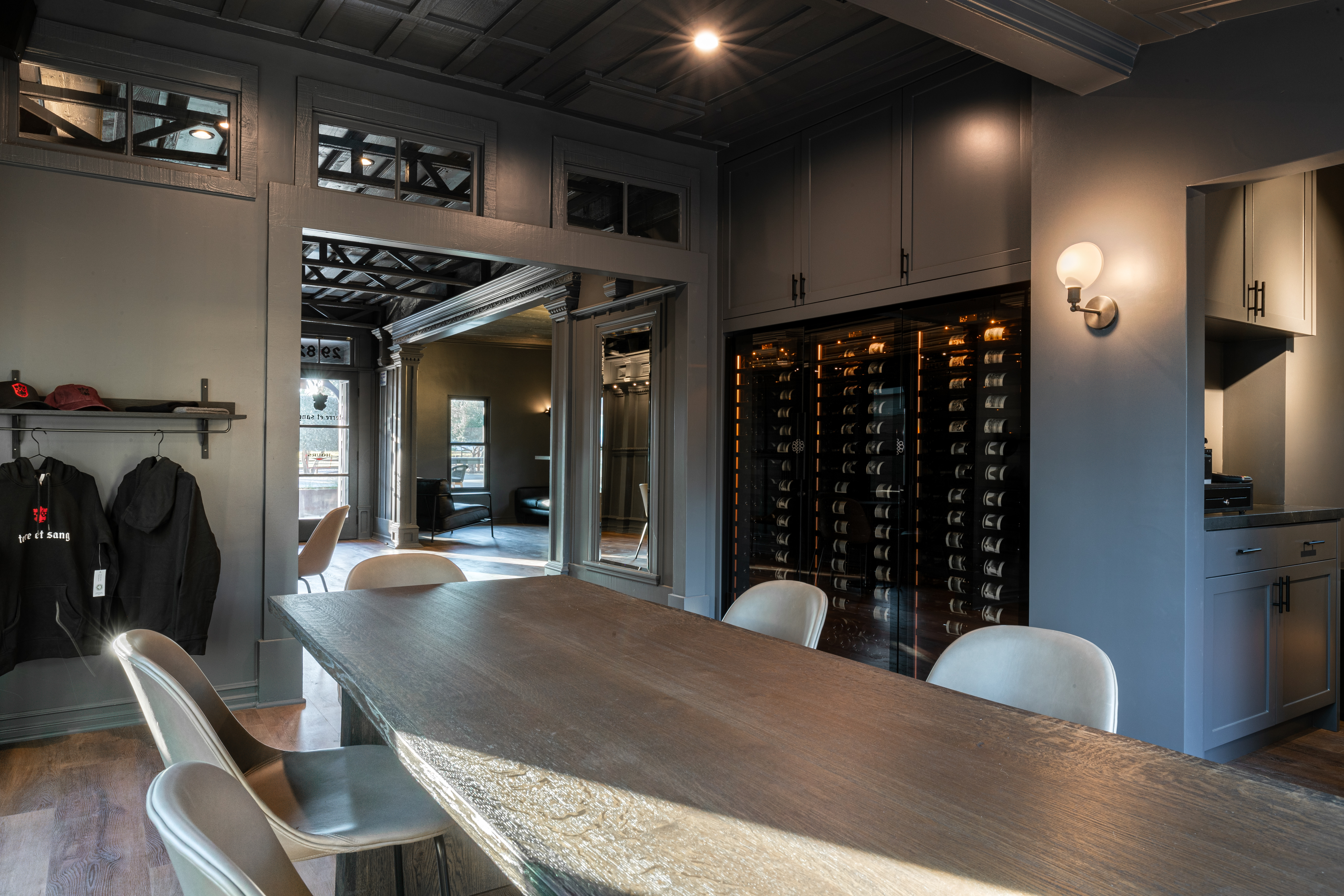 Conjuring the same focus and attention to detail as they do with their wines, the Harmons have taken a unique approach with their tasting space. Located in an historic building in the heart of Los Olivos, Terre et Sang on Grand is eclectic in its design aesthetic, melding the look and feel of the 1905-era residence with an experimentally modernist viewpoint. Against a color palette of stormy gray, natural elements of stone, leather, steel and wood add texture and depth, creating a striking backdrop for the winery’s hand-crafted Syrah and Grenache wines and blends. Terre et Sang on Grand will offer a lounge-like ambience, be open late and include pop-up partnerships and innovative events.