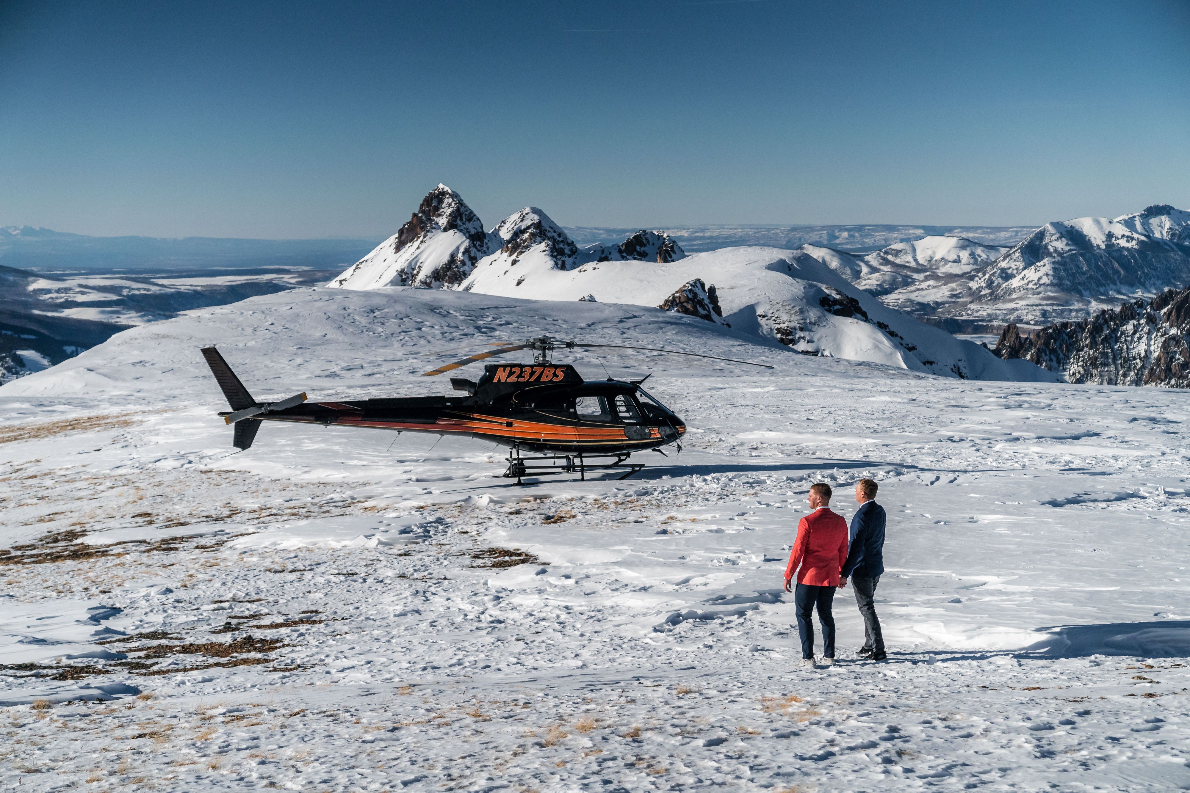 Recently, on February 10th, 2023, Adventure Amore planned a thrilling, surprise helicopter engagement photoshoot in the stunning mountains of Telluride, Colorado, requested by his client, Logan. Logan had pre-arranged a helicopter ride with MBR Helicopters for himself, his boyfriend Andy, and Adam – all with the intent of proposing once landing at their destination.