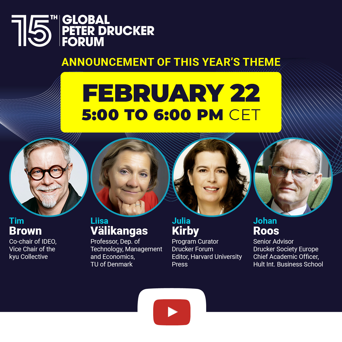Global Peter Drucker Forum will announce its 2023 theme on Feb 22. Watch the event, live on YouTube!