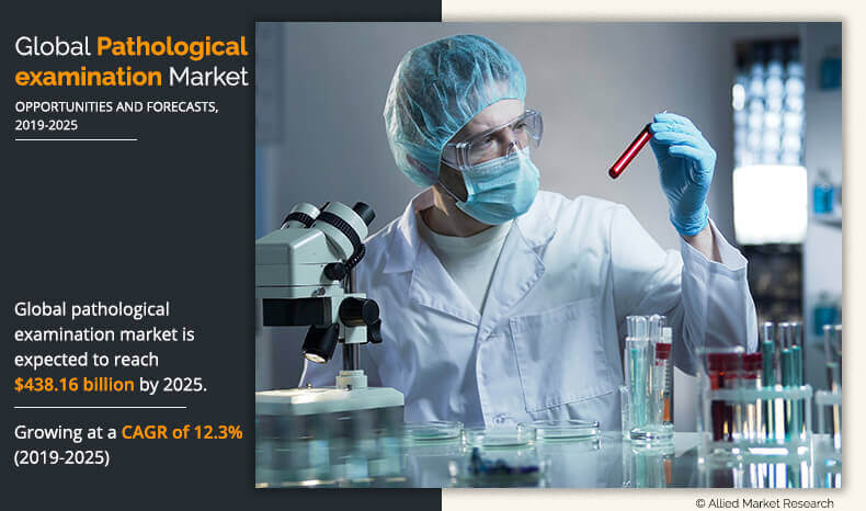 The global pathological examination market share was valued to be at $171 billion in 2017 and is expected to reach $438 billion by 2025, registering a CAGR of 12.3% from 2019 to 2025.