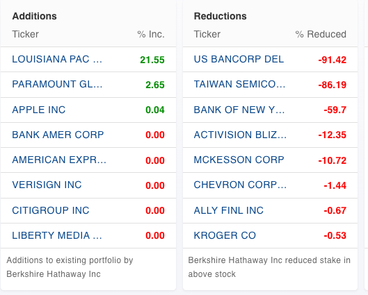 The other major changes to the portfolio were the sale of bank stocks. Berkshire sold almost all of its US Bancorp and about 60% of the Bank of New York Holdings. There were also reductions to Activision Blizzard (ATVI) just like in the previous quarter.