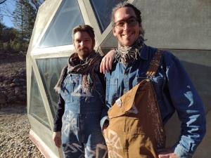 Geoship founders Morgan Bierschenk, left, and Bas Kools display their first-of-its-kind bioceramic dome.