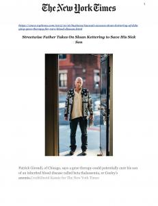 The miraculous project, described in the book, ‘Flight Of The Rondone’ was sabotaged. Court documents (New York Supreme Court file 150856/2017) illustrate that Third Rock Ventures and the CEO of Bluebird Bio, Nick Leschly, paid $35 million for an inferior product which causes serious side-effects. Court records proved that scientists and executives of both companies admitted that their product was inferior to SRT’s product. These legal records further indicate that it was desperation that led to Bluebird Bio and Third Rock Ventures' decision to infringe upon SRT’s gene therapy project, attempting to fix up their inferior medicine. They then had to cut off competition and did so by destroying SRT’s work which was more affordable and safer.