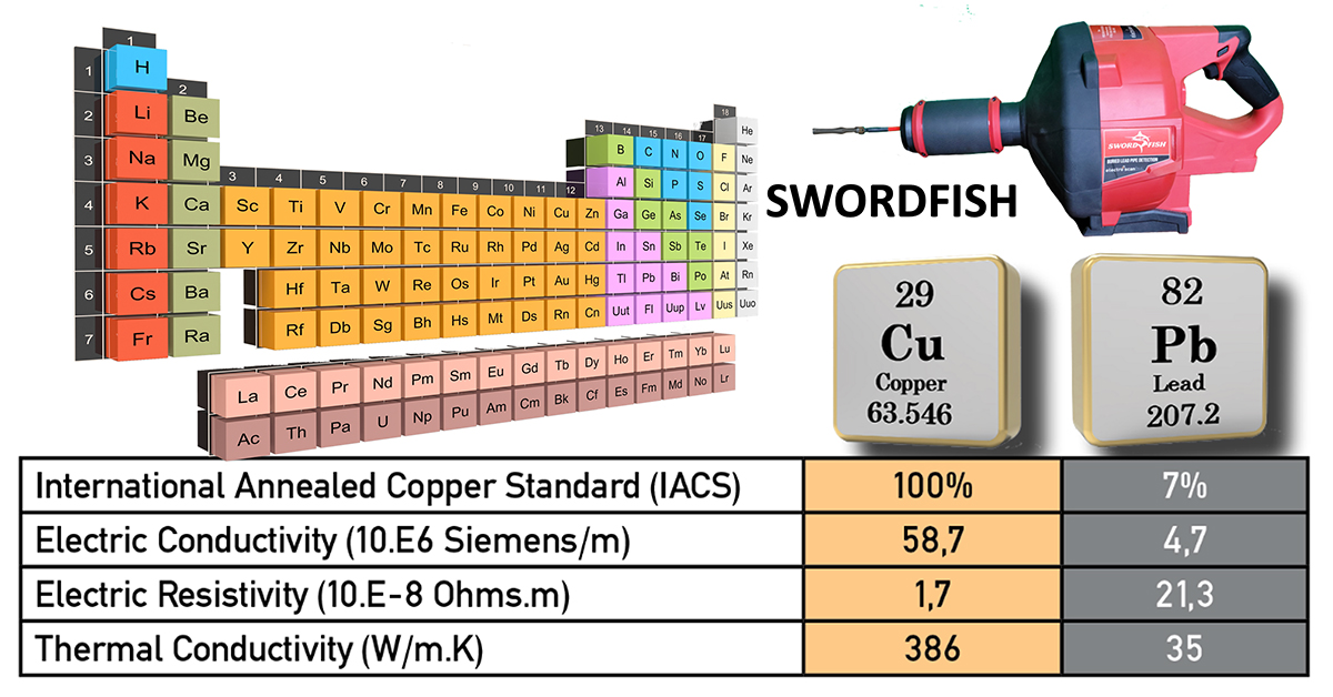 SWORDFISH measures the change in electrical resistance of pipe materials that have unique levels of conductivity as shown in the periodic table.