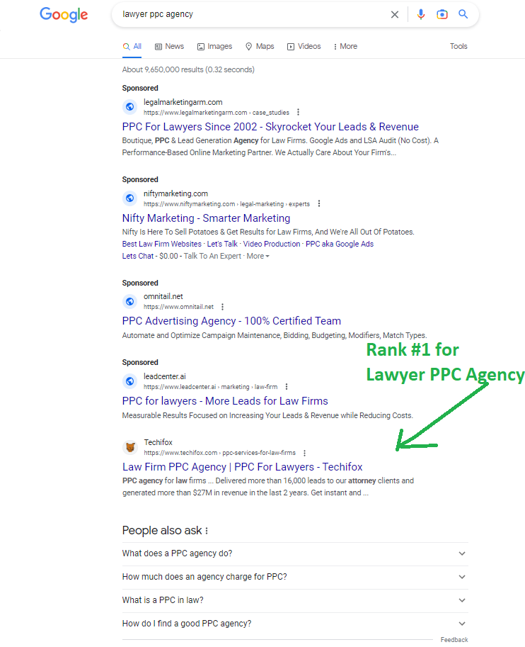 TechiFox is Now Ranking #1 for Lawyer PPC Agency
