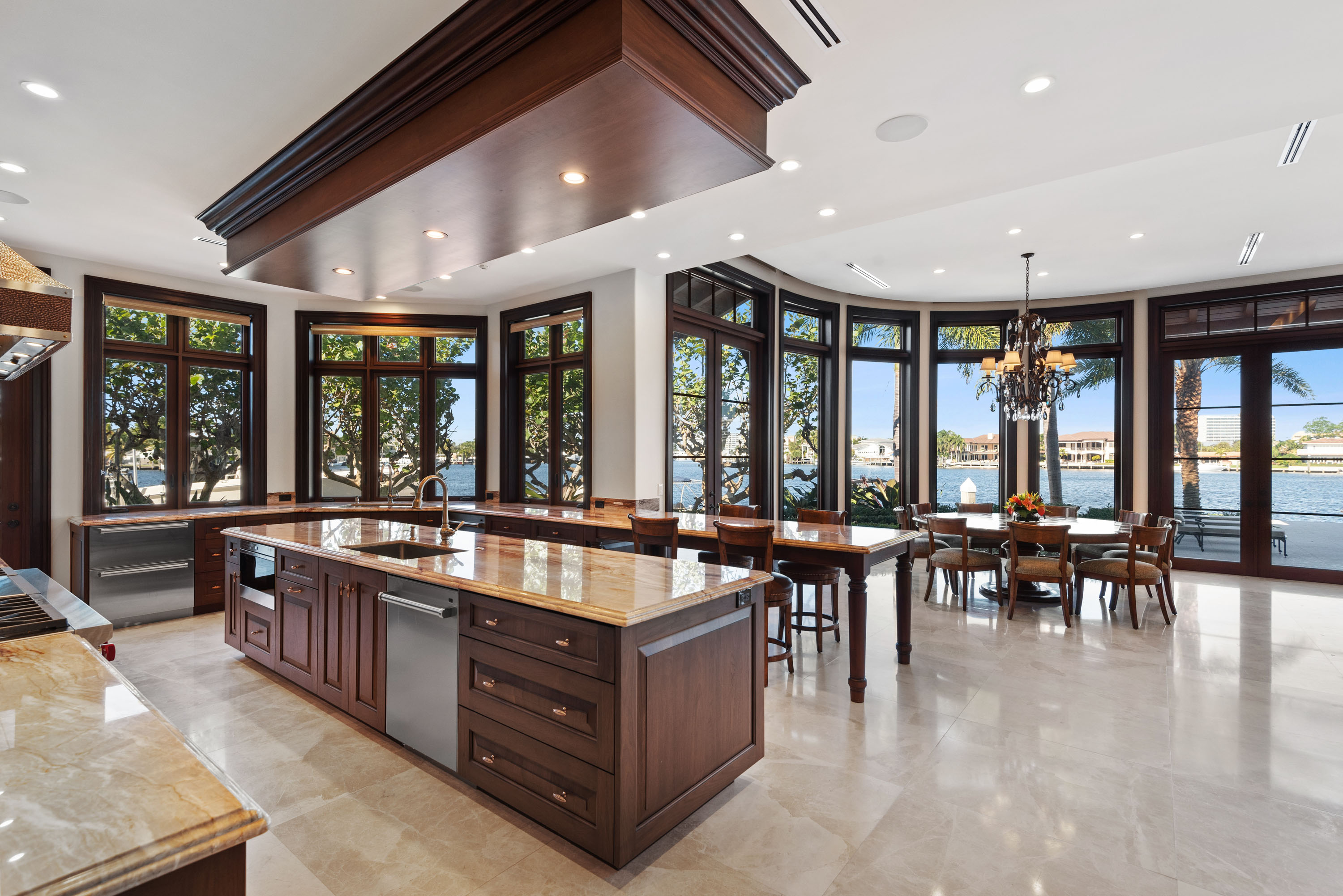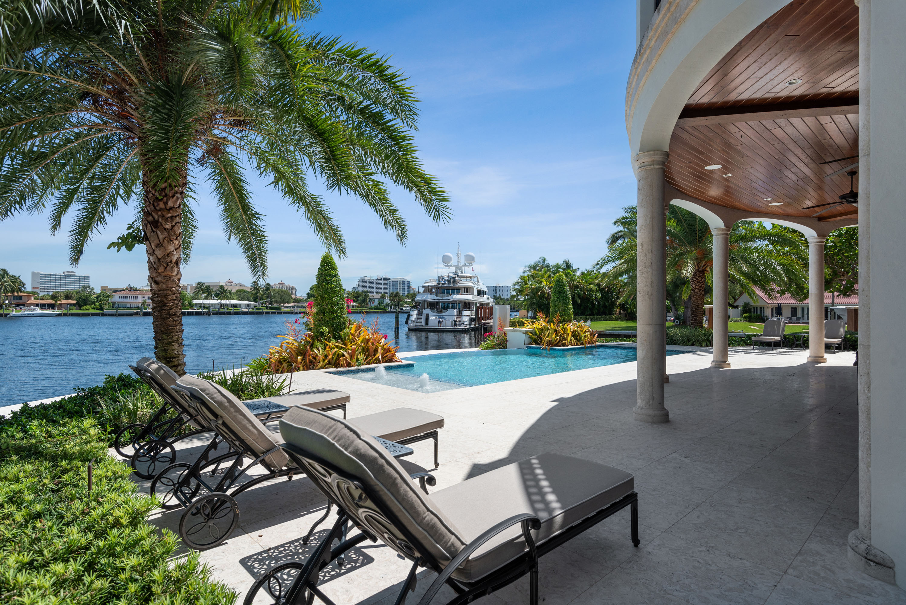 Additional features include 8 total bedrooms and 10 total bathrooms with Mediterranean yet chic modern design, perfect for entertaining; a gated entrance; double kitchen island, an additional back kitchen, and designer Wolf & Sub Zero appliances; an oversized primary suite with a soaking tub overlooking the water, steam shower, dual vanities, wet bar with Onyx countertop, and oversized, dual walk-in closets; an expansive private balcony; other spaces, including a flexible bedroom to function as an office, a gym with a full bathroom, steam & sauna, and two laundry rooms, one upstairs and one on main level; hurricane minded design, with CGI impact resistant windows and doors throughout and a generator; a Savant smart home system and security system; 1,000-gallon propane gas tank; two 170-foot protected mega-yacht slips, with 480-volt 3-phase power, and boat lift; and a four car garage—all just 25 minutes to Fort Lauderdale-Hollywood International Airport.