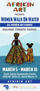 NORTH MIAMI, FLORIDA, UNITED STATES, February 23, 2023 /EINPresswire.com/ -- After the resounding success of "AfriKin Art: The Gaze Africana" that opened MLK Weekend through Black History Month 2023, AfriKin Art and the North Miami Community Redevelopment Agency (NMCRA) are once again collaborating to present their next installation, "Women Walk on Water" – a contemporary fine art exhibition and call for the end of injustice and violence against women and girls for Women’s History Month 2023. It opens Sunday, March 5th, 2023 through March 31st, 2023.Exhibiting artists include: Aisha Tandiwe Bell - USA / Angéle Etoundi Essamba - Cameroon, Netherlands / Annick Duvivier – Haiti / Aziza Vanterpool – Sint Maarten / Carina Kemelmajer – Argentina / Emeline Delsaut – France / Gridliani Guzmán – Venezuela / Ines-Noor Chaqroun – Morocco / Ivette Mejia – Dominican Republic / Katrina Coombs – Jamaica / Khaula Naima Nuruddin – USA / Luna Korme – Somalia / Magui Delfino – Argentina / Mila Hajjar – Rome / Niki Lopez – USA / Olga Barkar – Ukraine / Oneika Russell - Jamaica / Perla Sofia Gonzalez – Cuba / Rita Odibi – Nigeria / Rosario Verdecia – Peru / Syamarani Dasi – USA / Tracy Ann Simmonds – USA