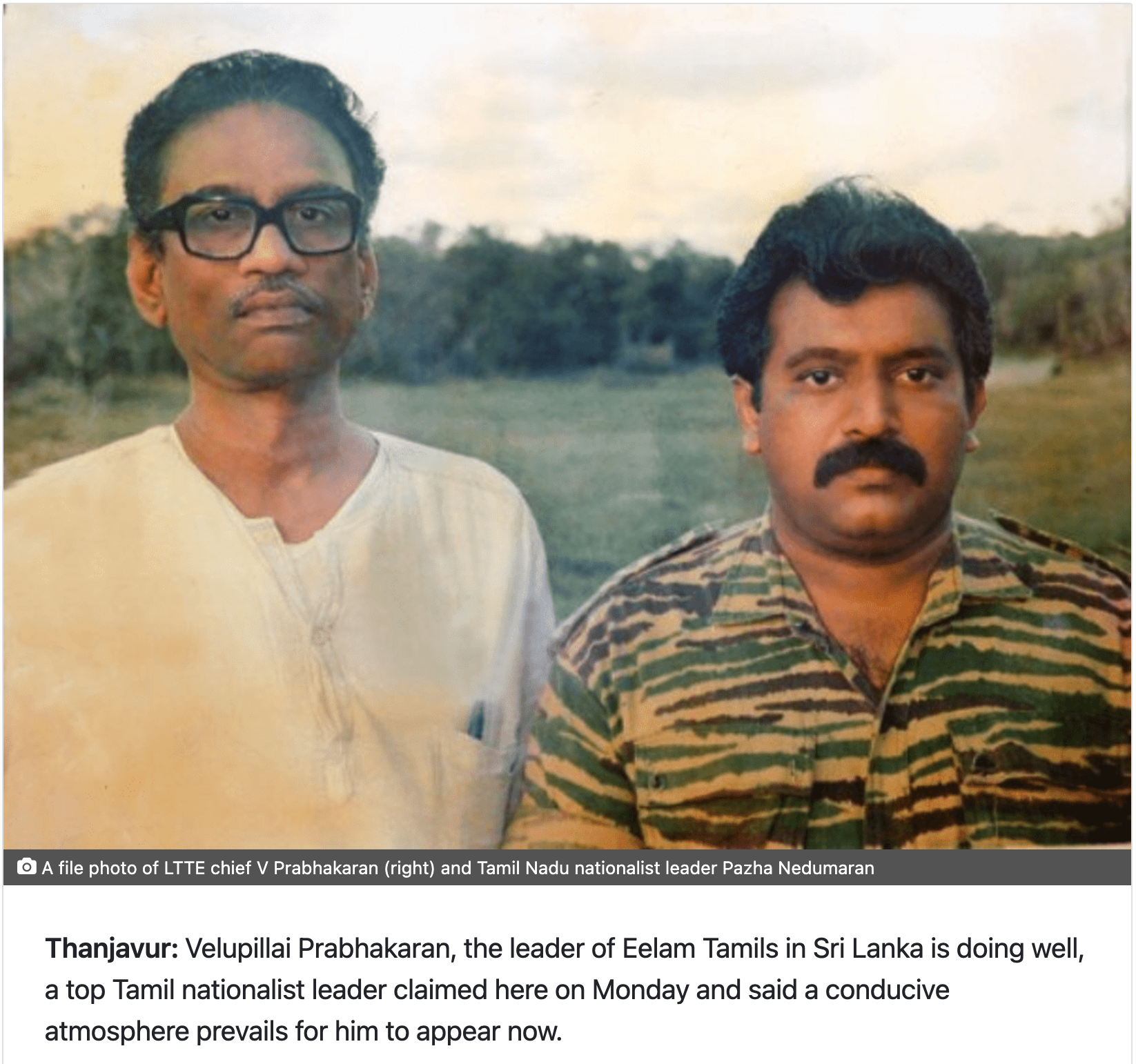 On February 13, 2023, former Congressman and Tamil nationalist movement leader Pazha Nedumaran claimed that Velupillai Prabakaran, the Liberation Tigers of Tamil Eelam (LTTE) leader, was still alive and would appear in public soon.