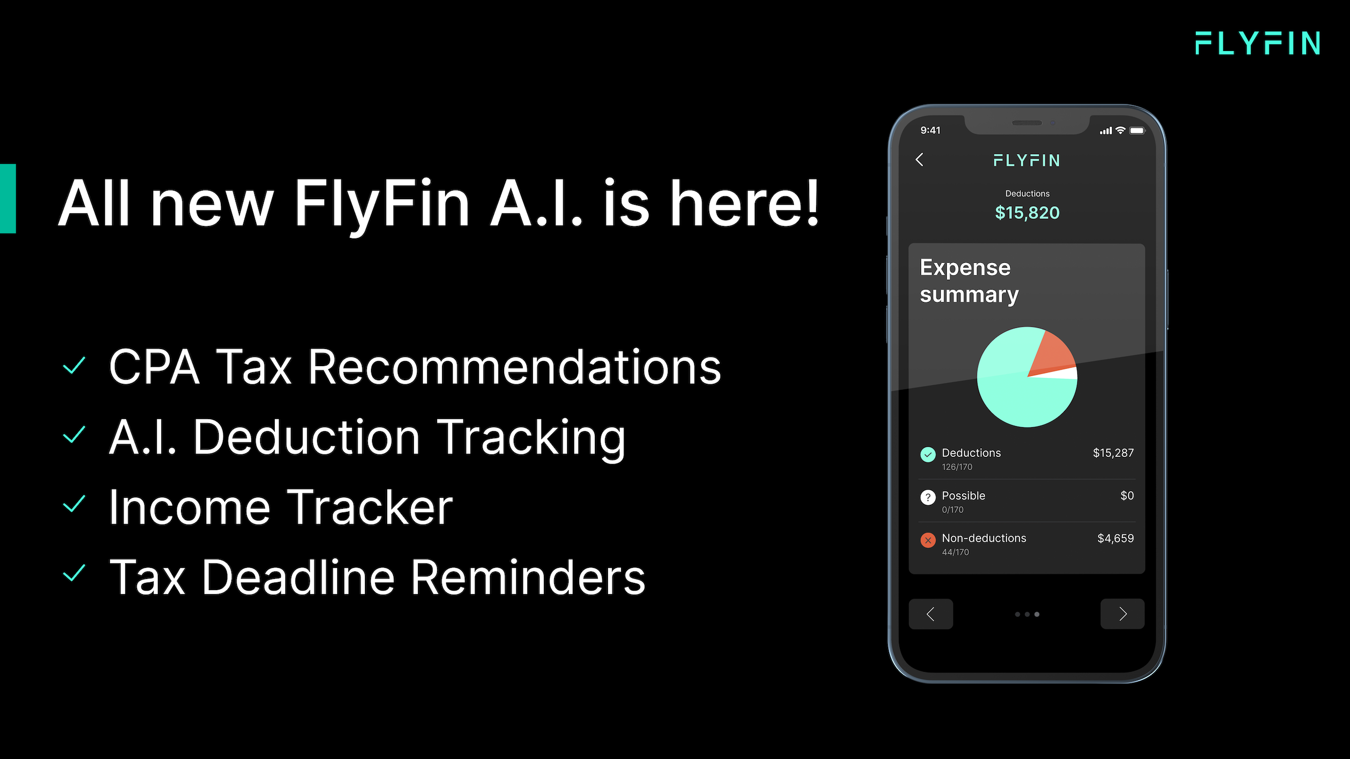 FlyFin is an award-winning, AI-powered platform that provides self-employed, sub-contractors, independent contractors, gig workers, freelancers and creator economy workers with a convenient, easy-to-use and affordable tax filing solution. FlyFin helps individuals maximize self-employment tax deductions and income tax refunds. With a "Man + Machine" approach, FlyFin leverages AI paired with highly experienced tax CPAs to deliver automation that eliminates 95% of the work required for 1099 self-employed individuals to prepare their taxes. FlyFin is a privately-held, venture-backed company based in San Jose, California.