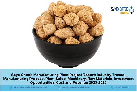 ALBANY, NEW YORK, UNITED STATES, February 24, 2023 /EINPresswire.com/ -- Syndicated Analytics new report titled “Soya Chunks Manufacturing Plant Project Report: Industry Trends, Manufacturing Process, Plant Setup, Machinery, Raw Materials, Investment Opportunities, Cost and Revenue 2023-2028” offers a comprehensive overview of the process involved in establishing a manufacturing facility for the soya chunks. It methodically examines various aspects, including manufacturing requirements, project costs and economics, success and risk factors, returns on investment, and profit margins.The study provides an in-depth analysis of the performance of the soya chunks market, encompassing major regions, key market segments, and future prospects. As such, this report is an essential read for business strategists, investors, researchers, consultants, and entrepreneurs who are interested in venturing into the soya chunks industry. The report draws upon both desk research and multiple levels of primary research to ensure accuracy and reliability.