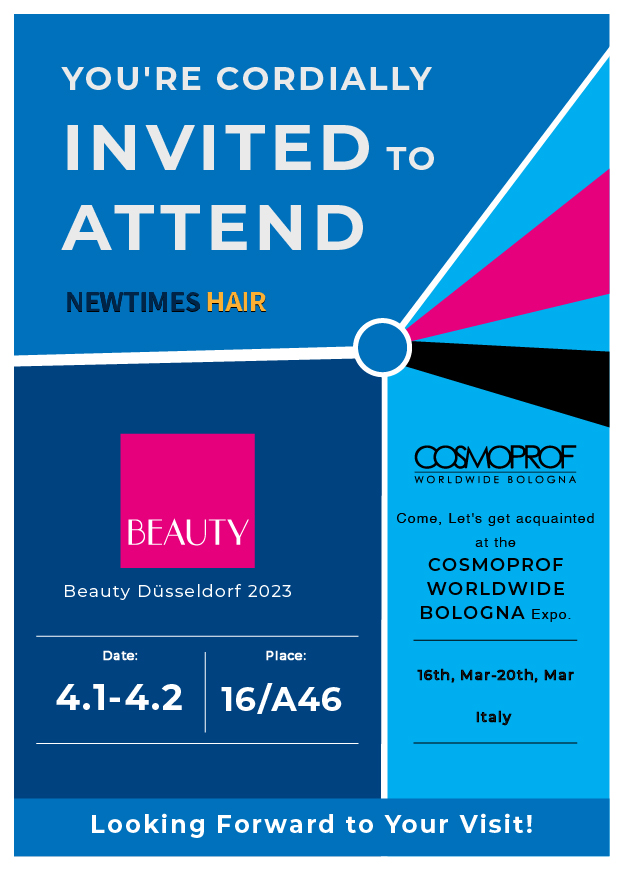 Now, after three challenging years, New Times Hair is thrilled to announce its participation in the upcoming Beauty Dusseldorf Trade Fair in Germany from April 1 to 2nd, 2023. Their sales representatives and CEO are eager to connect with their clients and business partners, addressing their queries, considering their suggestions, and exploring ways to enhance its products and services.