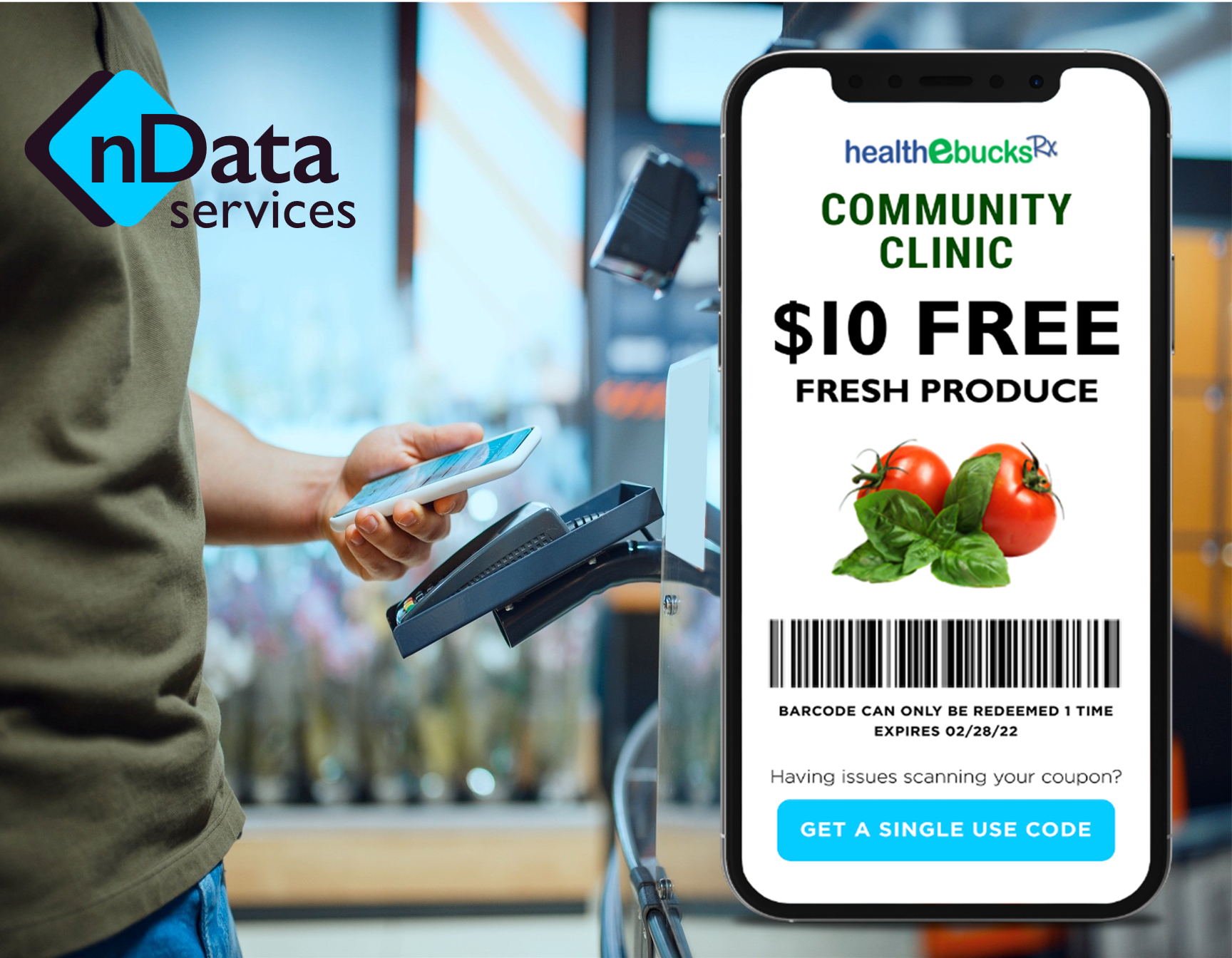 nData’s Mobile FoodRx application allows healthy food benefits to be delivered directly to a patient’s phone, in the form of an 8112 barcode or QR code. Legacy FoodRx programs require the use of paper vouchers or cards, which are labor intensive and costly. nData’s Mobile FoodRx solution serves beneficiaries more efficiently and effectively, and allows for the provision of extra services and content, like coupons for product discounts or healthy recipes. Mobile FoodRx is certain to become a vital tool in helping to provide both health and financial equity to at-risk communities.