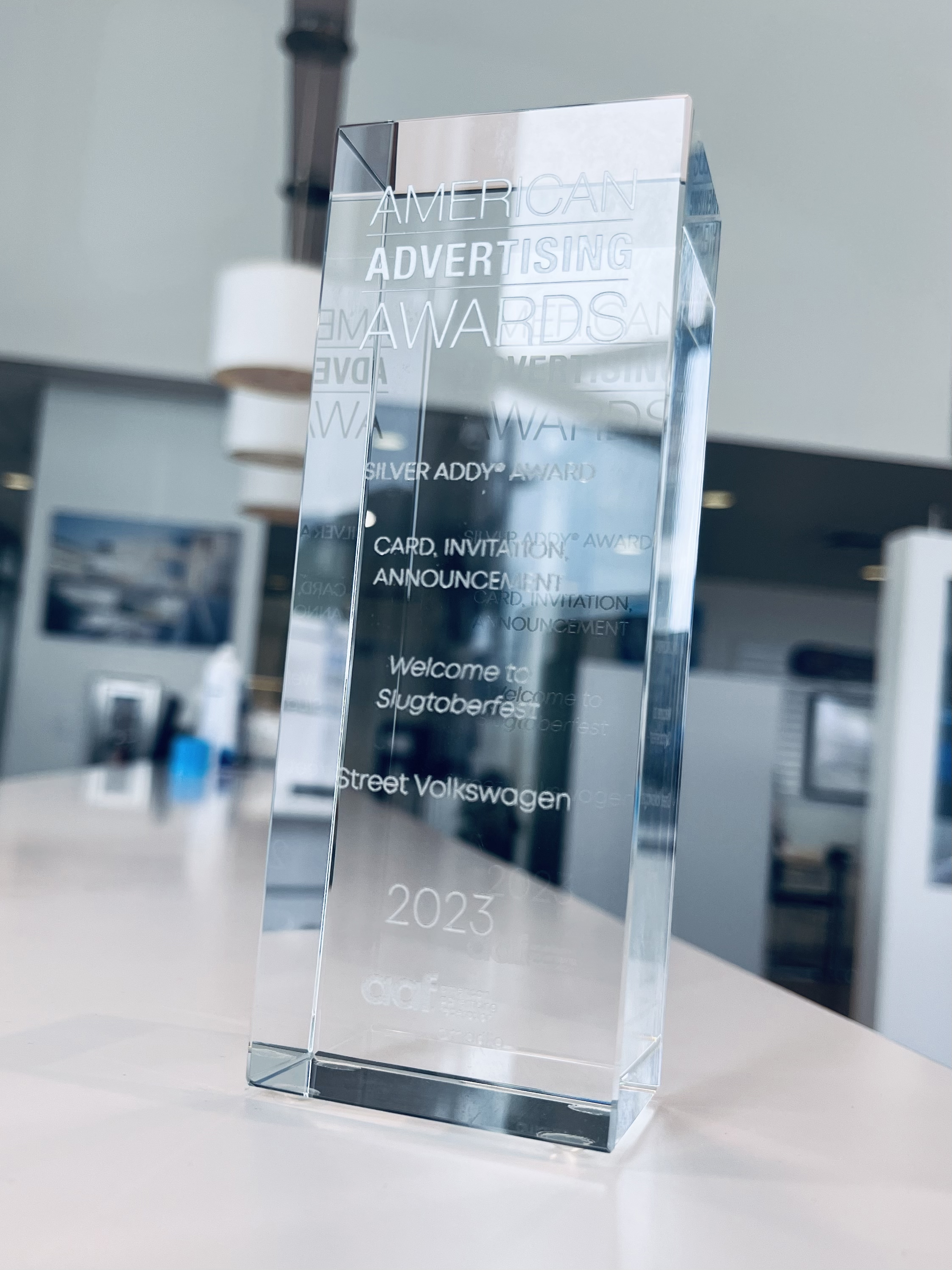 “I am delighted we were recognized at the awards gala for the work we did on the “Welcome to Slugtoberfest” campaign,” said Marketing Director, David Meraz. “This award means a great deal to me and to Street Volkswagen because we know the high honor it is to win an ADDY.”