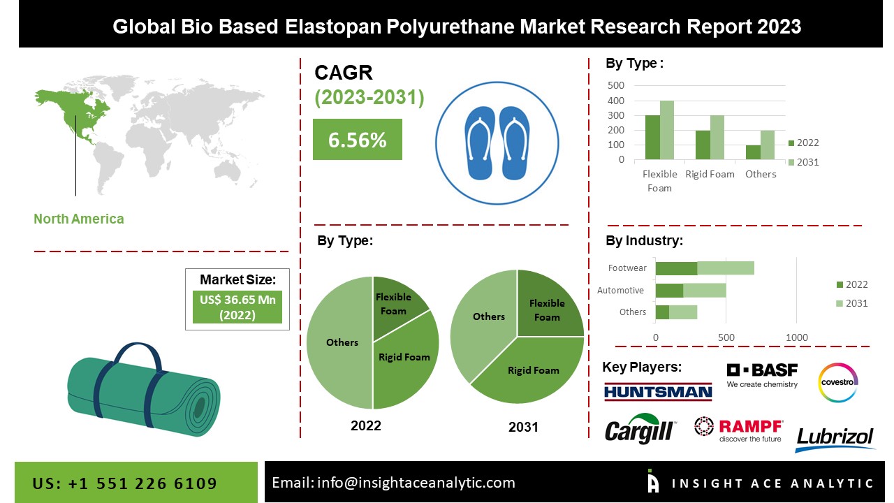 NEW JERSEY, SATTE NJ, USA, February 27, 2023 /EINPresswire.com/ -- InsightAce Analytic Pvt. Ltd. announces the release of a market assessment report on the "Global Bio-Based Elastopan Polyurethane Market Size, Share & Trends Analysis Report By Type (rigid foam, flexible foam, coatings, adhesives, & sealants), End-user Industry (automotive, building & construction, consumer goods, electrical & electronics, and packaging)- Market Outlook and Industry Analysis 2031"