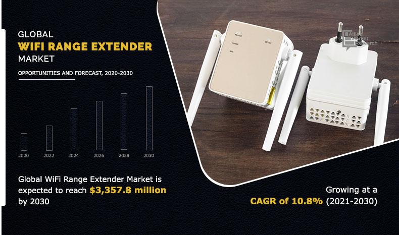 The global Wi-Fi range extender market size is projected to reach $3357.8 million by 2030, registering a CAGR of 10.8% from 2021 to 2030.