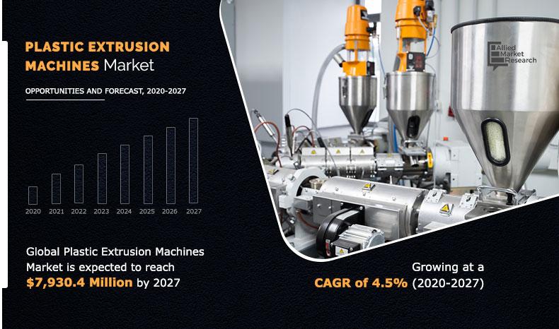 The global plastic extrusion machines market is projected to reach $7,930.4 million, At a CAGR of 4.5% forecast to 2027
