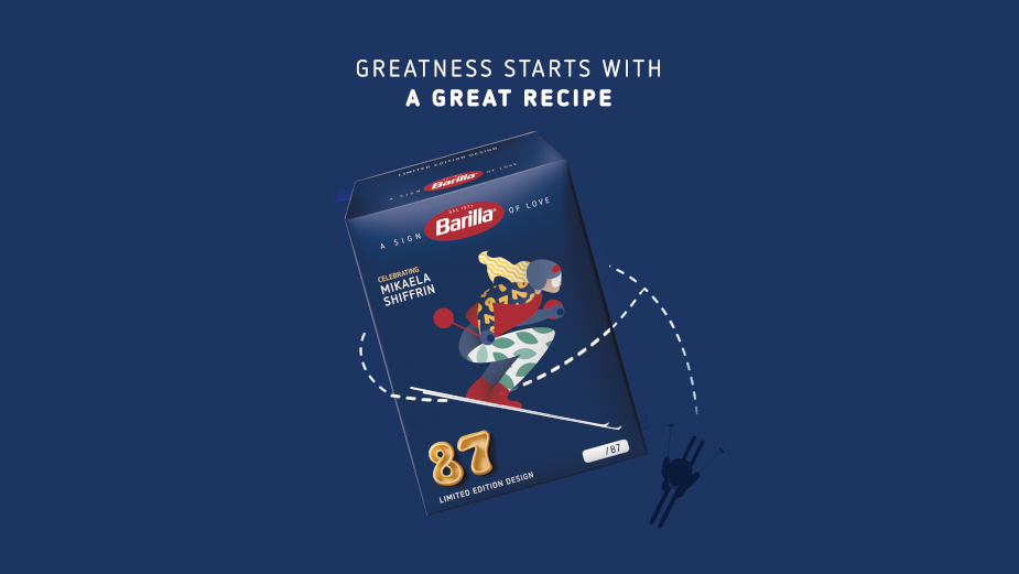 Greatness starts with a great recipe: Barilla launch of a limited-edition pack sold for charity to celebrate Mikaela Shiffrin’s historic 87th skiing victory.