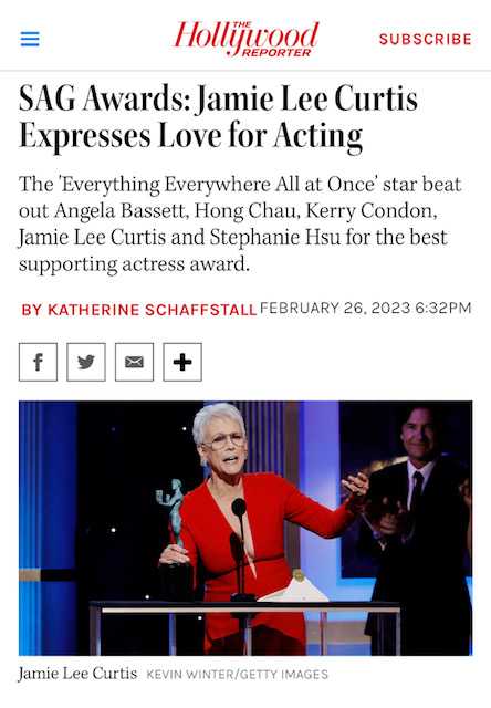 LOS ANGELES, CA, UNITED STATES, March 6, 2023 /EINPresswire.com/ -- Actor, writer, and director Brian Connors, along with the producers, cast, and crew of SENIOR ENTOURAGE, express their delight and thrill for Jamie Lee Curtis on her recent recognition as the best supporting actress for her work in Everything Everywhere All at Once by SAG-AFTRA. Additionally, Jamie has received an Oscar nomination.