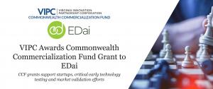 EDai has been awarded a Commonwealth Commercialization Fund (CCF) grant for $75,000. VIPC’s CCF programs have distributed more than $45 million to Virginia-based startups, entrepreneurs and university-based inventors since 2012.