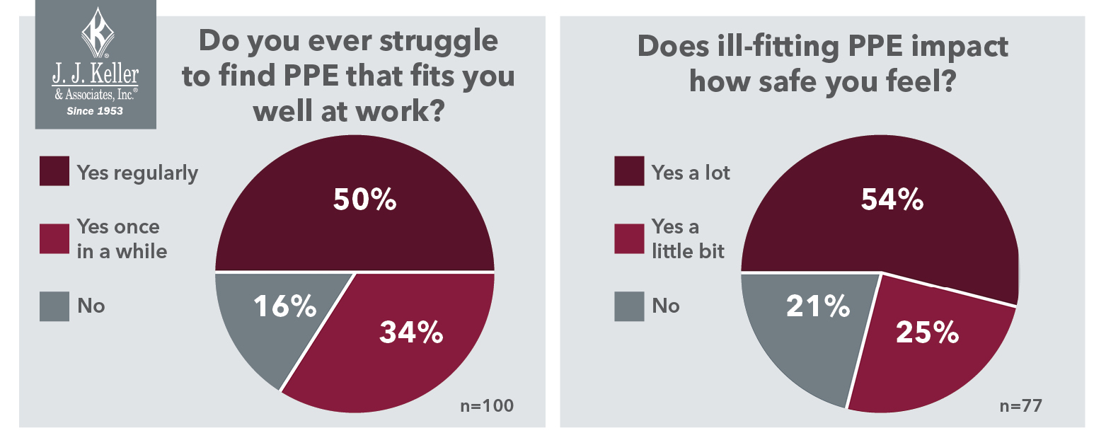 These findings echo what the J. J. Keller Center for Market Insights found in its 2022 PPE Pain Points study, in which 35% of PPE buyers found it difficult to locate and purchase items that fit their female employees.