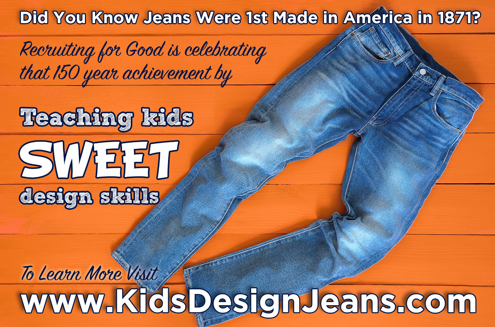 Recruiting for Good created Kids Design Tomorrow. Kids who successfully complete one year mentoring program earn opportunity to design own sweet jeans www.KidsDesignJeans.com