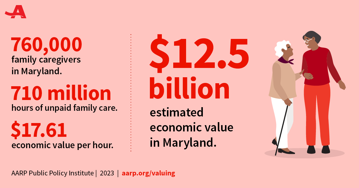“Family caregivers play a vital role in Maryland’s health care system, whether they care for someone at home, coordinate home health care, or help care for someone who lives in a nursing home,” said AARP Maryland State President Jim Campbell. “We want to make sure all family caregivers have the financial, emotional and social support they need because the care they provide is invaluable both to those receiving it and to their community.”