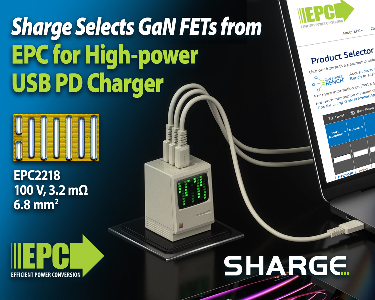 Sharge Selects GaN FETs from EPC for High-power USB PD Charger