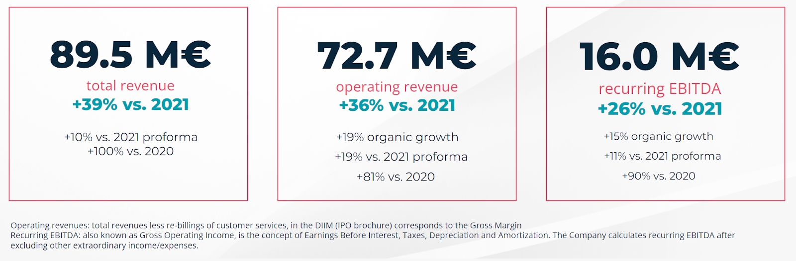 In 2022, operating income rose to €72.7 million (+36%) while total income stood at €89.5 million (+39%).