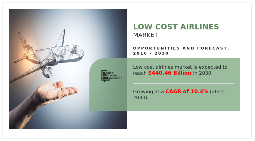 PORTLAND, OREGON, UNITED STATES, March 14, 2023 /EINPresswire.com/ -- According to a new report published by Allied Market Research, titled, “Low Cost Airlines Market," The low cost airlines market was valued at $155.02 billion in 2016, and is estimated to reach $440.46 billion by 2030, growing at a CAGR of 10.4% from 2022 to 2030.