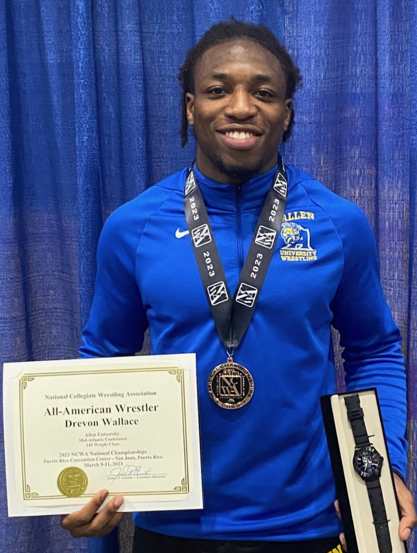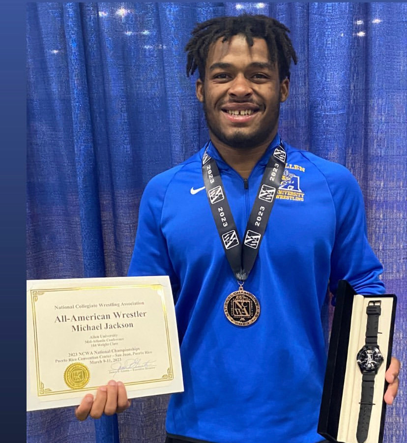 Led by Coach Eric Pack, Allen University defeated conference opponent Clemson University, amongst other Division 1 schools this season on their road to National rankings. In addition to the team's victory, Juniors Michael Jackson (104) and Drevon Wallace (149) each earned All-American status by placing in the top 8 of their weight class.