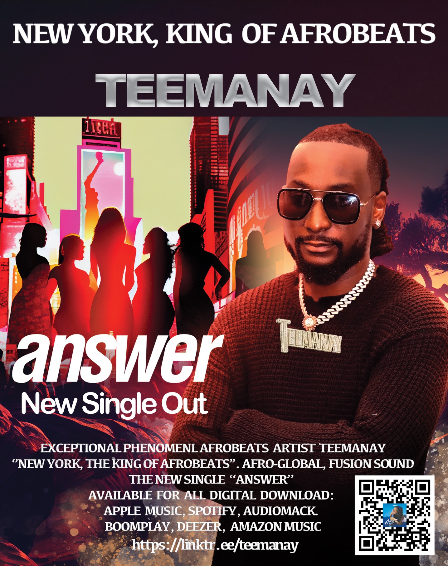 "I am excited about this new release," TEEMANAY said in a statement. "Answer is only the tip of the iceberg, and I can't wait for the world to finally enjoy my lengthy catalog." The single was produced by the talented Jaylon, a Nigerian-born producer based in London, and mixed and mastered by the renowned engineer DRAF, who hails from New York. The collaboration between these two artists has resulted in a masterpiece that will have fans tapping their feet and humming the tune.