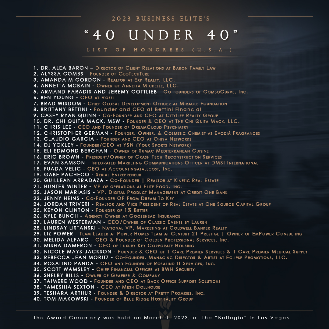2023 Business Elite's "40 Under 40" Award Ceremony and Gala Dinner at the "Bellagio" in Las Vegas