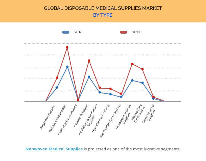 Disposable medical supplies market is projected to reach $80,252 million by 2023, growing at a CAGR of 7.3% from 2017 to 2023.