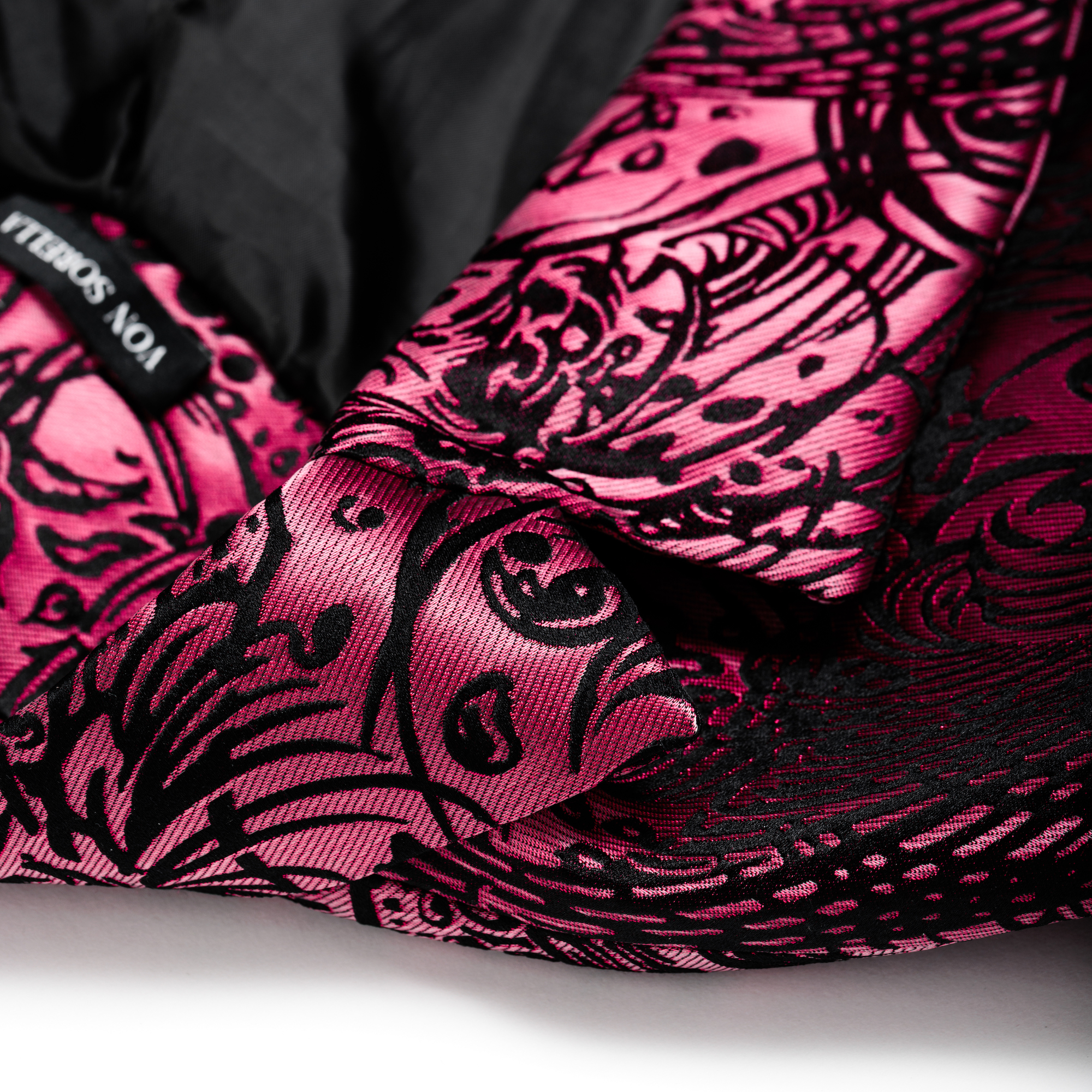 “Ahead of the collection showing, we’re thrilled to give everyone an early chance to discover what the brand is all about,” said founder and creative director Priscilla Von Sorella. Key pieces include “Charm”, a silver arabesque jacket with peaked shoulders, and “Hypnotic”, a psychedelic print magenta blazer highlighting the label’s signature features of fine quality fabrications, precise tailoring, and elegant styling.