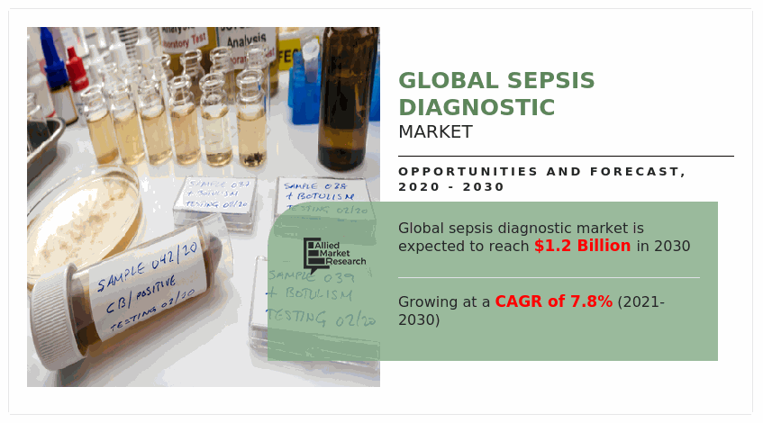 PUNE, MAHARASHTRA, INDIA, March 24, 2023 /EINPresswire.com/ -- Allied Market Research has published a study report with the title Sepsis Diagnostics Market Size accounted for ๐๐๐ ๐๐๐.๐๐ ๐ฆ๐ข๐ฅ๐ฅ๐ข๐จ๐ง ๐ข๐ง ๐๐๐๐, and it is estimated to surpass around ๐๐๐ ๐.๐ ๐๐ข๐ฅ๐ฅ๐ข๐จ๐ง ๐๐ฒ ๐๐๐๐, registering a ๐๐๐๐ ๐จ๐ ๐.๐% from 2021 to 2030.
