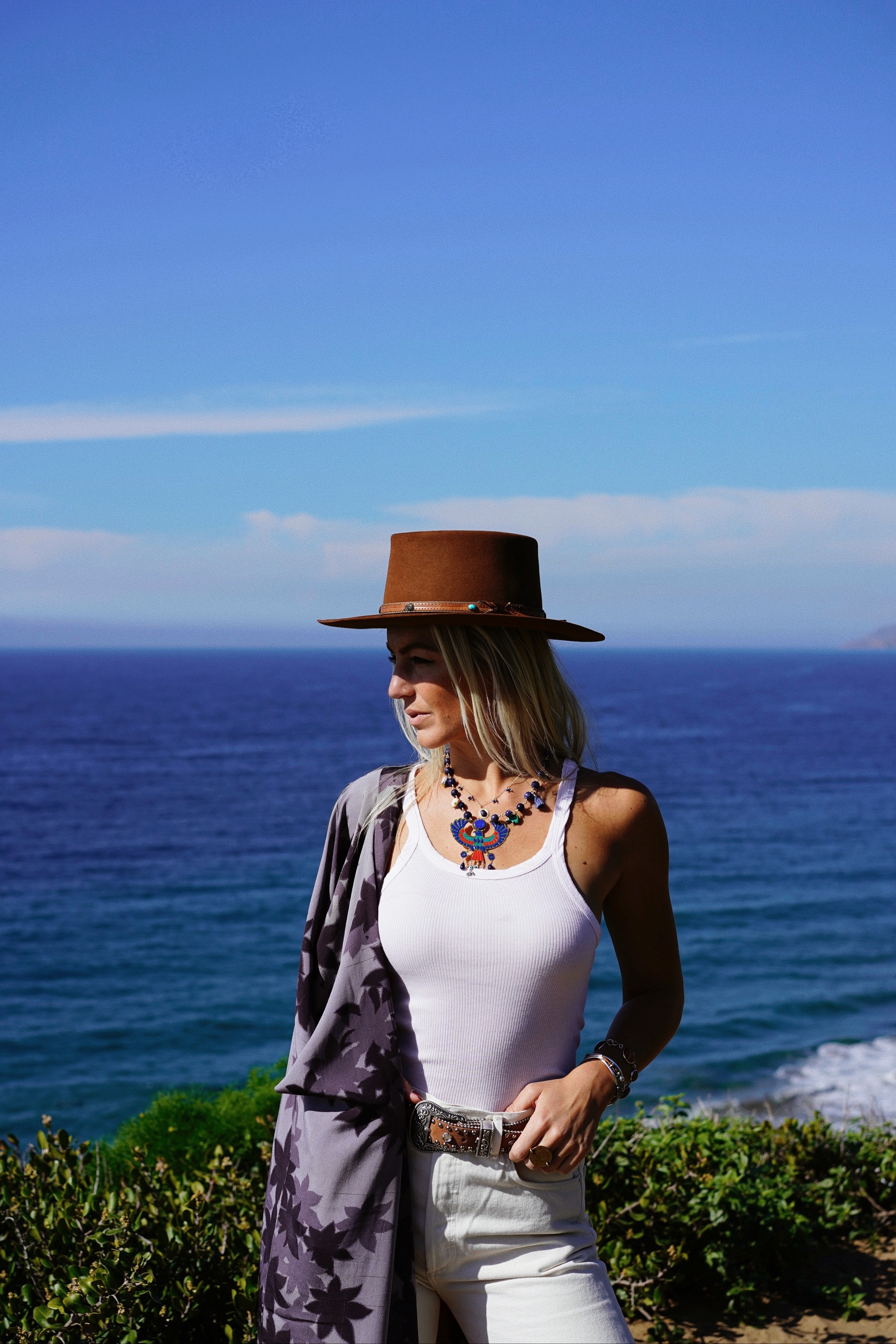 Mara Whitehead’s striking visual interpretation of “Canyon Town” serves as a captivating complement to the song’s unpretentious grandeur. Set against the rugged, awe-inspiring terrain of California’s desert, Regina Ferguson wanders barefoot through the shifting sand dunes, strums her guitar in front of a towering redwood fence, and wades into a glassy lagoon with her lantern resting on a rock. All the while, a pair of dancers – Ryan Lee and Ryan Green – gracefully traverse the hills behind her, mirroring the profound sense of awe and respect that the environment awakens in the singer. As they move in flawless synchrony, they not only establish a deep connection with the earth and the sky but also with each other, emphasizing the value of shared exeriences.