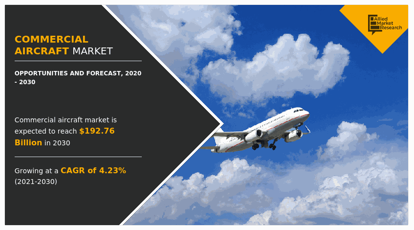 PORTLAND, OREGON, UNITED STATES, March 28, 2023 /EINPresswire.com/ -- Allied Market Research recently published a report, titled, "Commercial Aircraft Market by Size (Narrow Body, Wide Body, Regional & Business Jet, and Freighter), by Application (Passenger, Cargo): Global Opportunity Analysis and Industry Forecast, 2020-2030." As per the report, the global commercial aircraft industry generated $128.21 billion in 2020, and is projected to reach $192.76 billion by 2030, growing at a CAGR of 4.2% from 2021 to 2030.