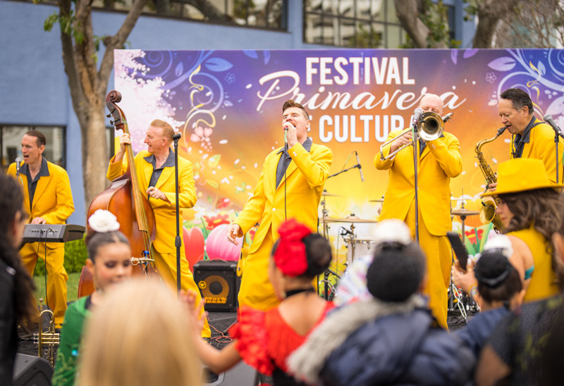 The Jive Aces, Britain’s No. 1 swing band, performed at a Guatemalan spring festival on L. Ron Hubbard Way in L. A. while in the city for their 2023 U.S. tour.