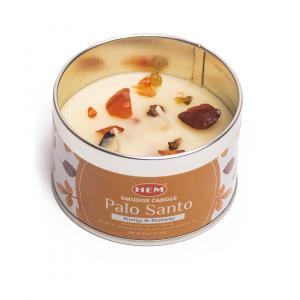 An infusion of Palo Santo and Precious Aroma Oils that energise inner energy and transforms a person into an element of pure powerhouse A subtle sweet and woody fragrance that helps to reflect, soothe and restore balance. The calming fragrance balances the chakras leading the way to wisdom, clarity and making way for good vibes. It helps to connect deeply with the spiritual world. The delicate scent of the HEM Palo Santo Smudge Candle helps remove negative energy and obstacles that could be hindering productivity while attracting good fortune.