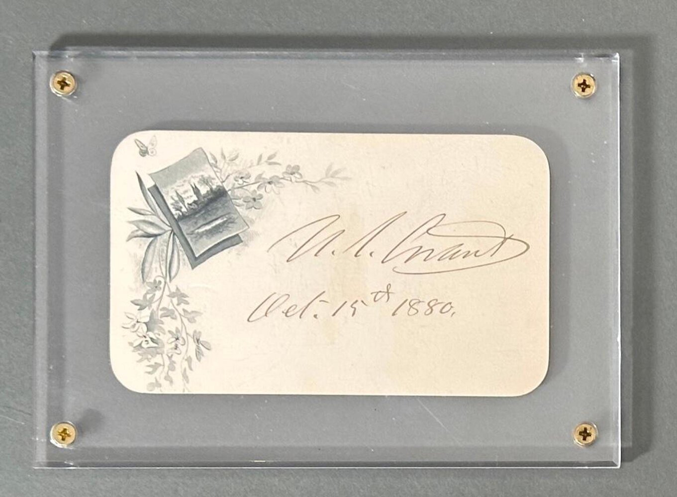 Lot 77 is a heavy brass construction Indian Wars-era US belt plate and belt (est. $150-$250). Lot 86 is a genuine signature of former US President and Civil War hero Ulysses S. Grant. The signature, in brown ink, is on a stock type calling card with green decorative printing. It’s dated Oct. 15, 1880 and is housed in a protective case (est. 600-$900). Grant was born in Ohio.