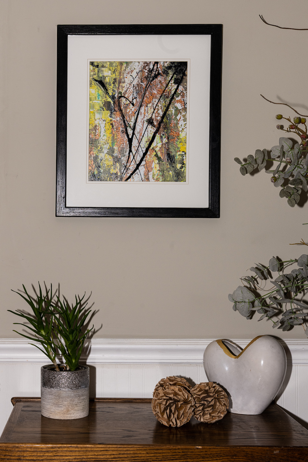 Lori's art shows a little bit of the wild craziness of the world we live in and yet it is calming with the colors and lines and curves that engage the eye. Her pieces feature bright colors and bold lines, creating a vibrant and energetic atmosphere, with the one notable black and white exception.