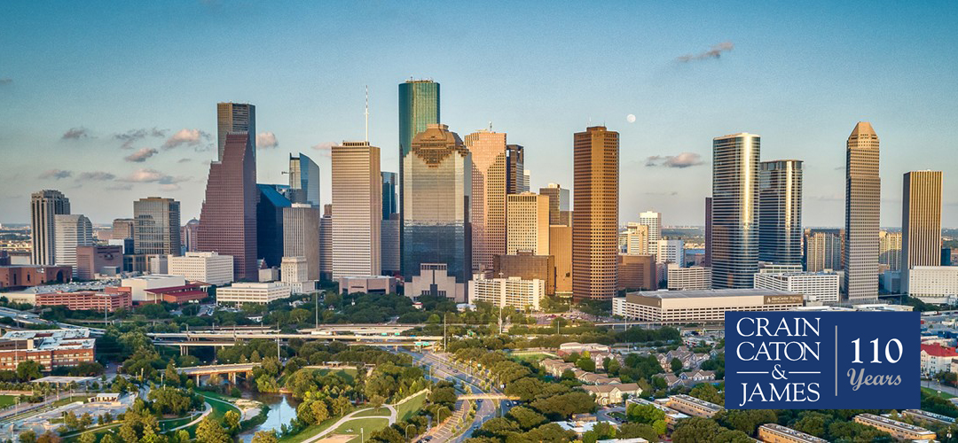 Crain Caton & James, P.C. provides first-class legal services with integrity and exceptional value to its clients in Houston, Texas, and around the world. The Firm’s over 110-year history in downtown Houston gives it strong ties to Houston and a deep commitment to giving back to the community whenever possible. Founded in 1912, the Firm has a wide range of practice areas, including Banking, Corporate, Real Estate, Probate and Estate Planning, Environmental, Employment, Intellectual Property, Fiduciary Litigation, Commercial Litigation, Family, Appeals and more.