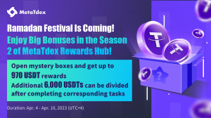 During the campaign, for new users who complete a spot cumulative trading volume of no less than 50 USDTs in the MetaTdex Rewards Hub:
