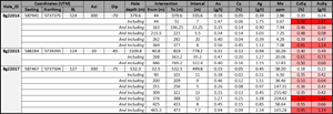 Summary table for drill holes Bg22014, Bg22015 and Bg22017