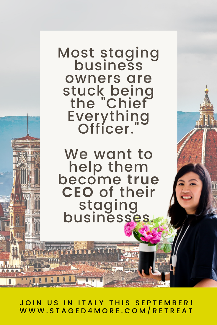 "Our Italy Home Staging Business Mastery Retreats are designed to help established home stagers break out of the day-to-day grind to gain new perspectives, inspiration, and strategies for achieving growth in their businesses. Most staging business owners are stuck being the ‘Chief Everything Officer.’ We want to help them become true CEO of their staging businesses," said Cindy Lin.