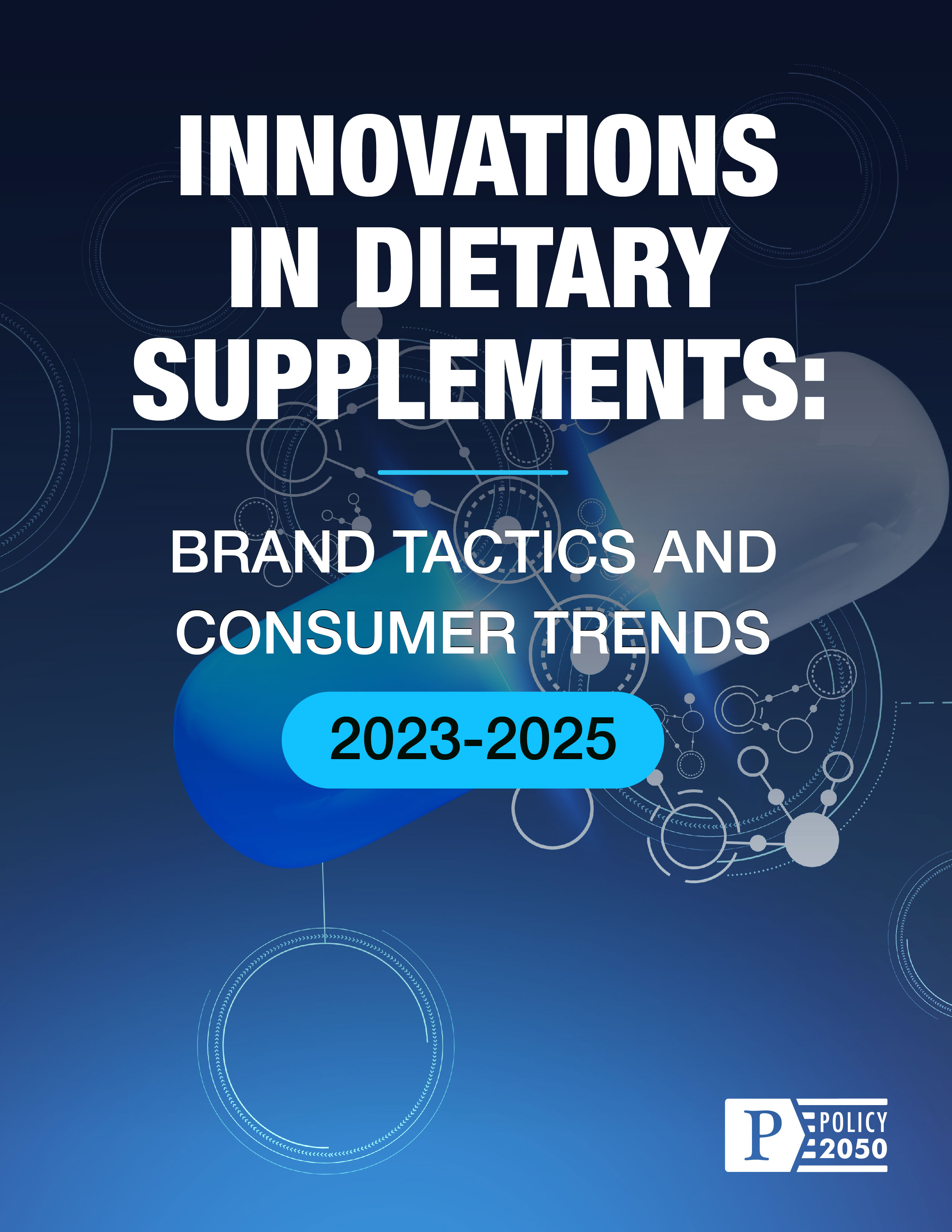 SAN FRANCISCO, CALIFORNIA, USA, April 6, 2023/EINPresswire.com/ -- A report has been released that could help the supplements industry and its investors to better align with current market conditions and public health goals. The 62-page Policy2050 report, titled “Innovations in Dietary Supplements: Brand Tactics and Consumer Trends (2023-2025),” documents the technological evolutions now occurring in the supplements industry and gathers insights directly from innovators/experts leading the way. As a result of health/wellness consumer trends and data-driven business strategies, the global supplements market could soon register a compound annual growth rate (CAGR) in the range of 7.3%–9%, according to market forecasts.