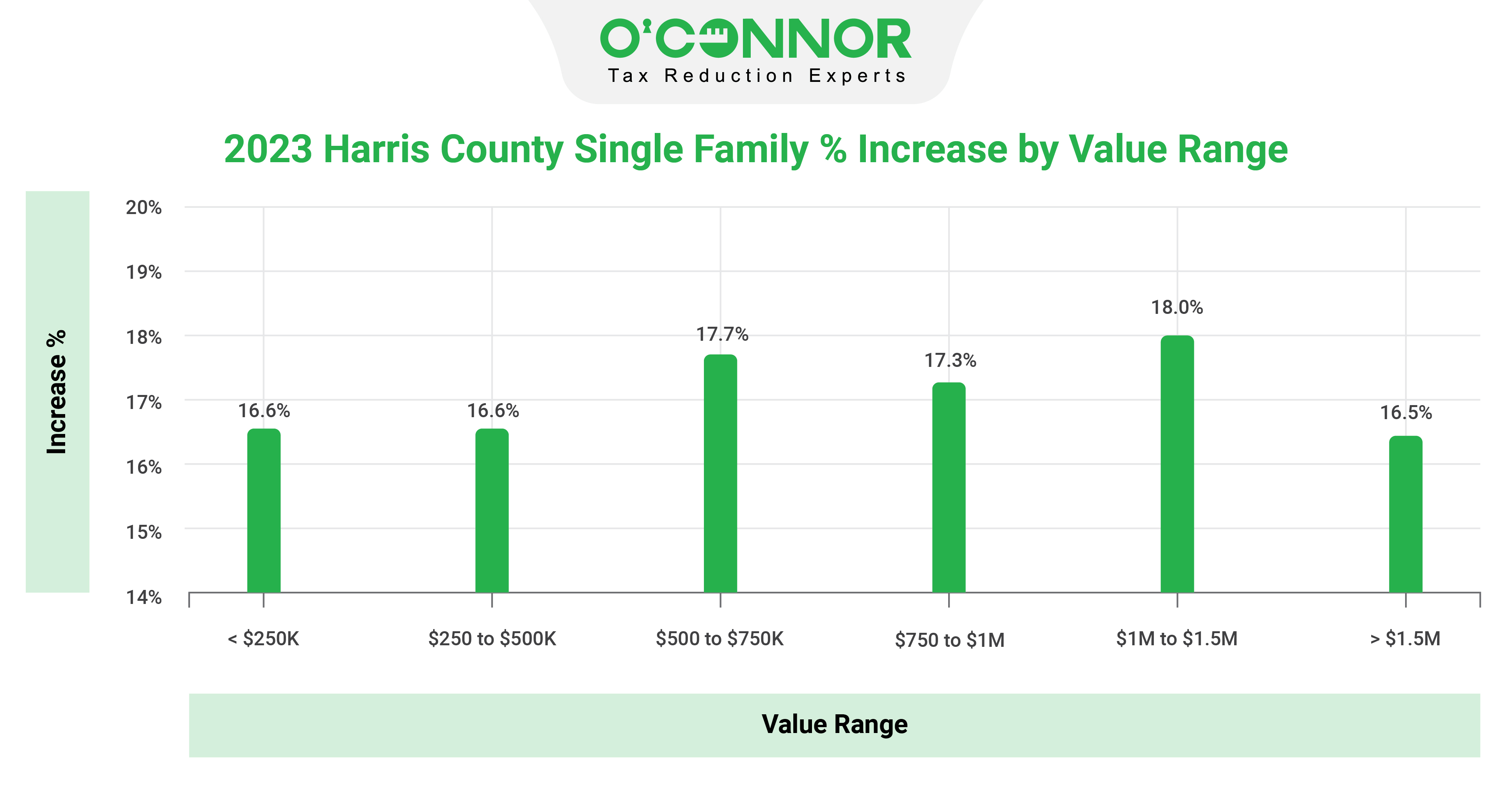HOUSTON, TX, UNITED STATES, April 11, 2023/EINPresswire.com/ -- Harris County home owners are being taxed based on 116.2% of the value of their property, based on an analysis by O’Connor, an expert in property tax consulting and appraisal services. Over 90% of Harris County home owners received notices of assessed value that exceed the market value of the property. Before considering protests of the 2023 value, the excess assessment will generate excess property taxes of $1,365,000,000 for Harris County home owners according to O’Connor.An estimated 90% of Harris County houses are valued in excess of the January 2023 market value based on a study of over 50,000 Harris County single-family sales from January 2022 to March 2023. Home sale prices were adjusted for market conditions since values spiked upward in 2022 and then declined in 2023 to just above the January 2022 level. The comprehensive study includes houses, lots, condos, townhomes, duplexes, triplexes, fourplexes, etc.