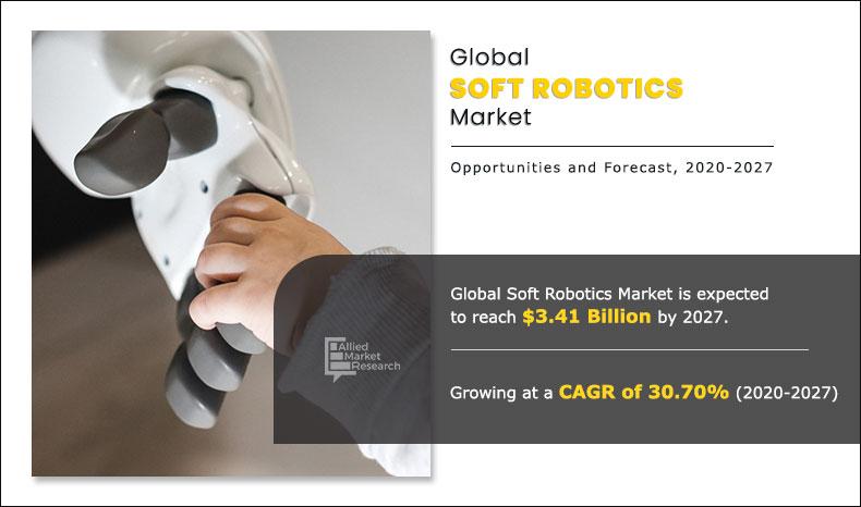 PORTLAND, OR, UNITED STATES, April 11, 2023 /EINPresswire.com/ -- According to a new report published by Allied Market Research, titled, “Soft Robotics Market by Application, Industry Vertical, and Region: Global Opportunity Analysis and Industry Forecast, 2022–2030", the global soft robotics market size was valued at $573.8 million in 2019, and is projected to reach $3.41 billion by 2027, registering a CAGR of 30.7% from 2020 to 2027. The report offers a detailed analysis of changing market trends, top segments, key investment pockets, value chain, regional landscape, and competitive scenario.
