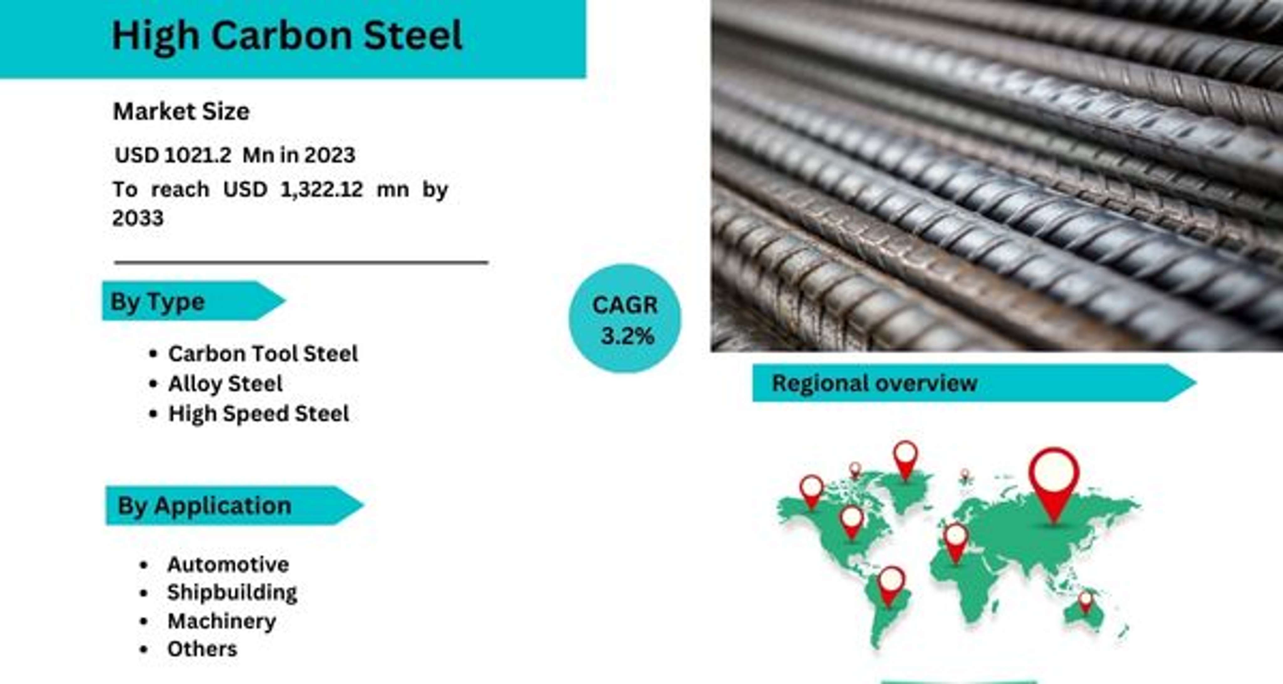 NEW YORK, NY, UNITED STATES, April 11, 2023 /EINPresswire.com/ -- The High carbon steel market was estimated at USD 1021.2 billion in 2023 and is projected to hit USD 1,322.12 billion by 2033, poised to grow at a CAGR of 3.2% during the forecast period 2023 to 2033