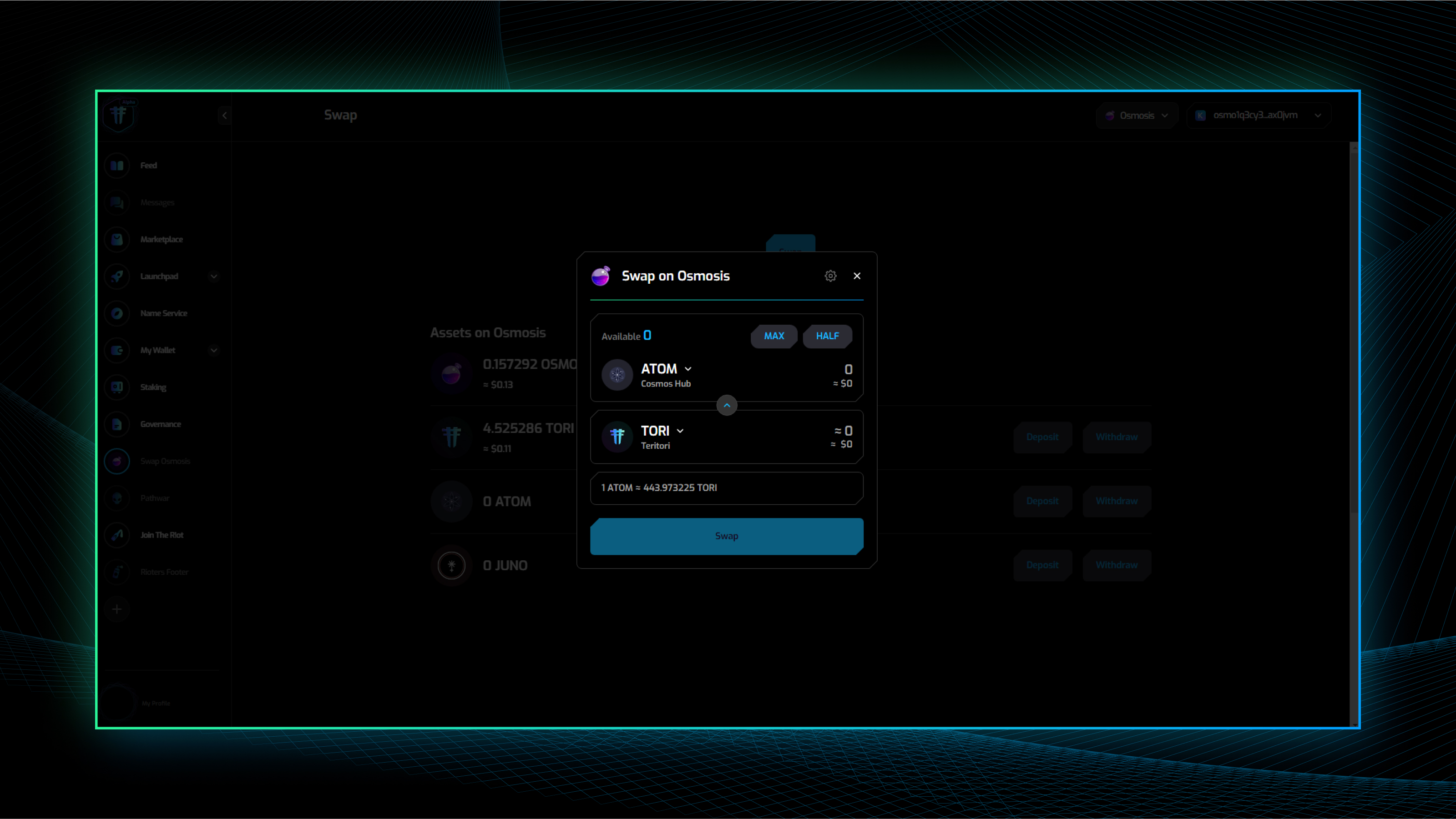 Among the next features to come, we count the alpha versions of the social network, a dApp store (integrating in particular the major DEX of the Cosmos ecosystem: Osmosis), but also a freelance marketplace, a multisig-wallet, a DAO deployer, or even gated token chat features.